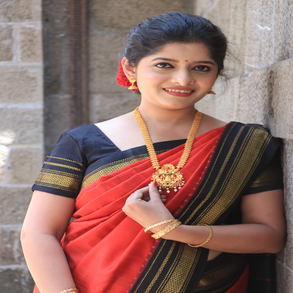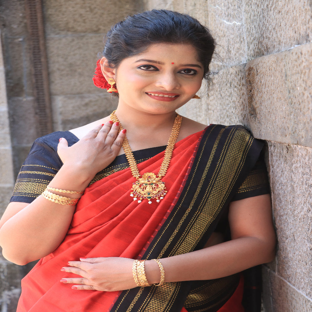 Long Necklace Set with Red and Bottle Green Stones